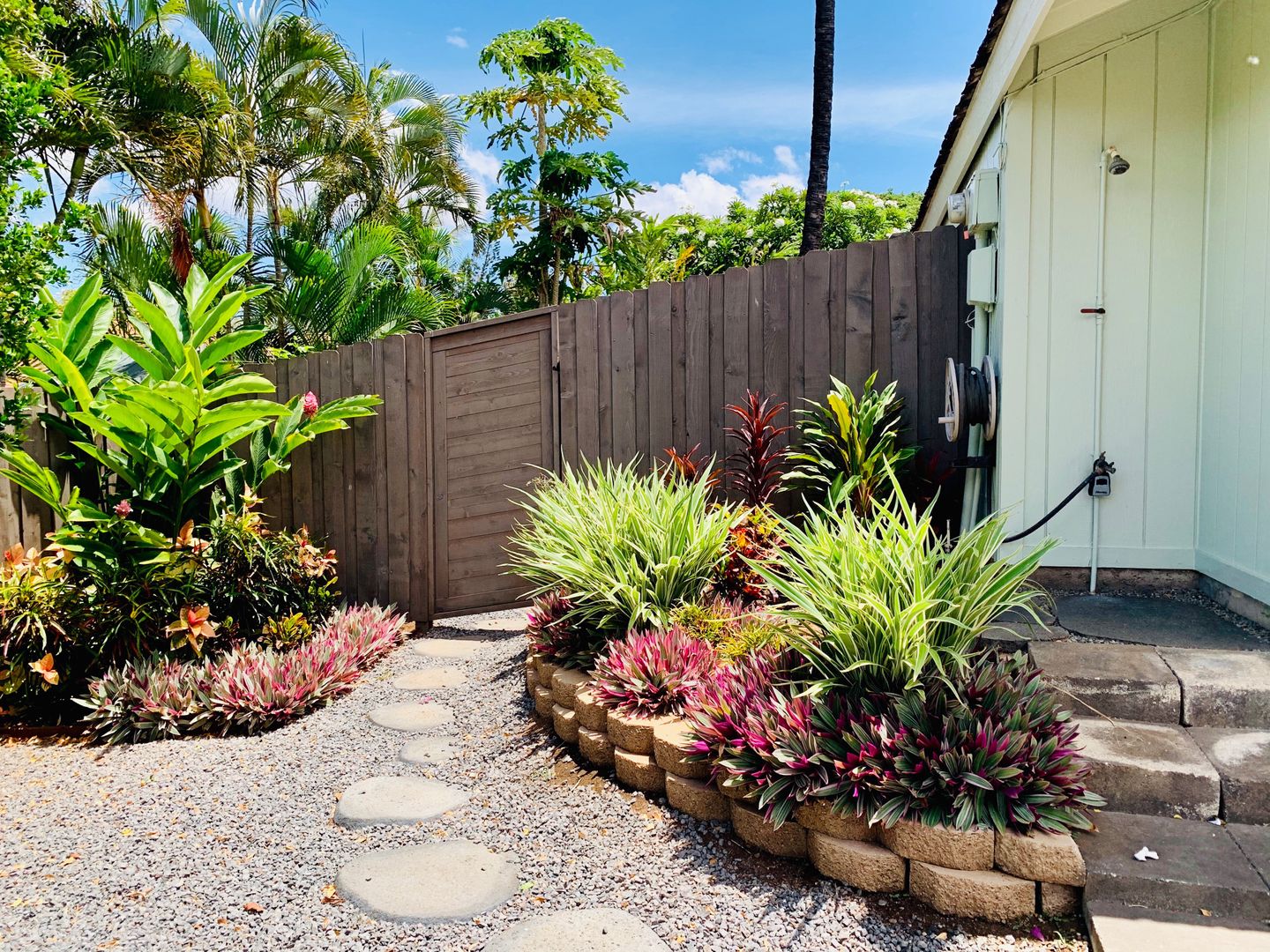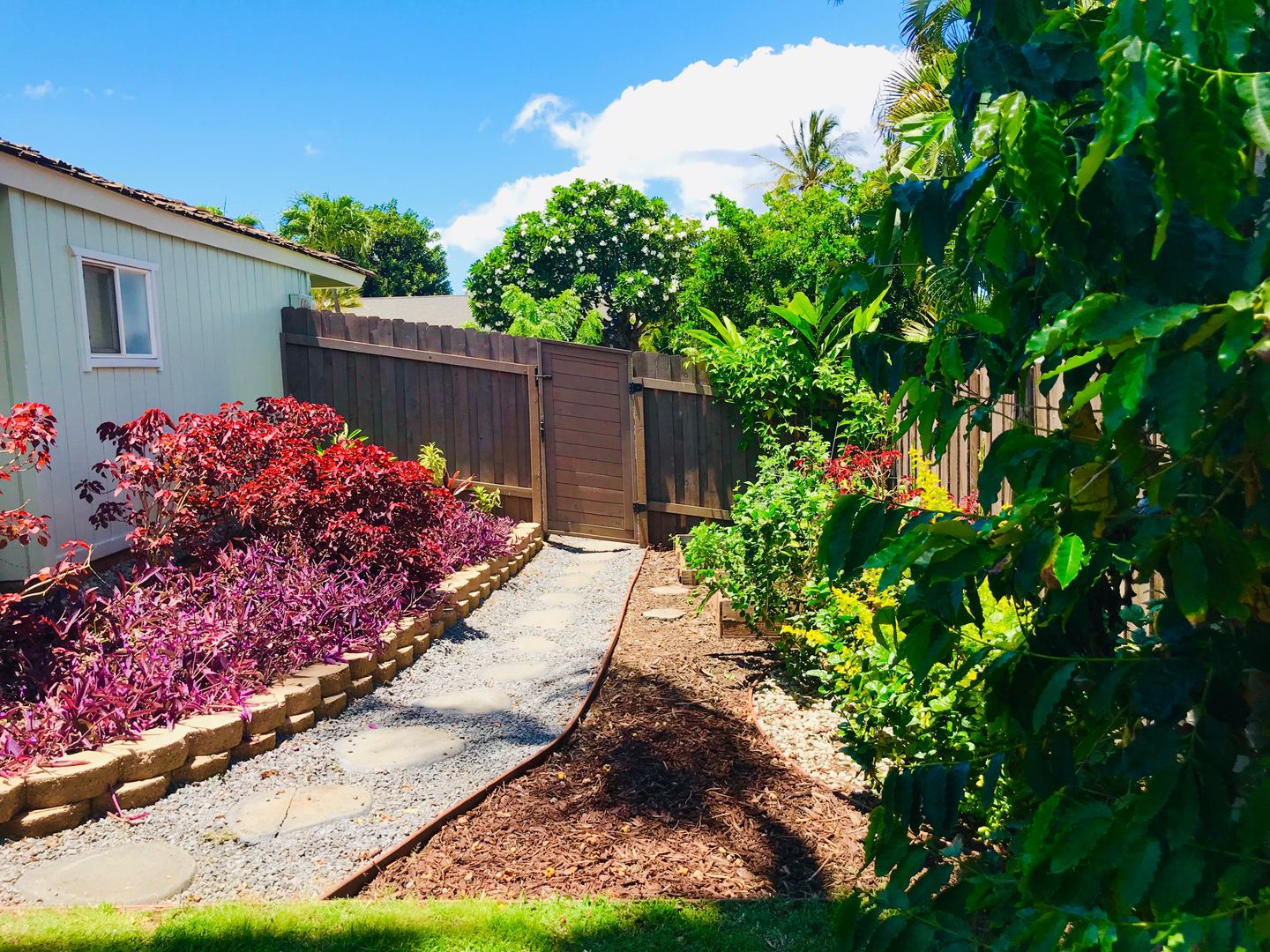 - Spacious yard and garage: Large enclosed yard with fruit trees galore—strawberry guava, papaya—and lush green grass. A 2-car garage offers plenty of storage.