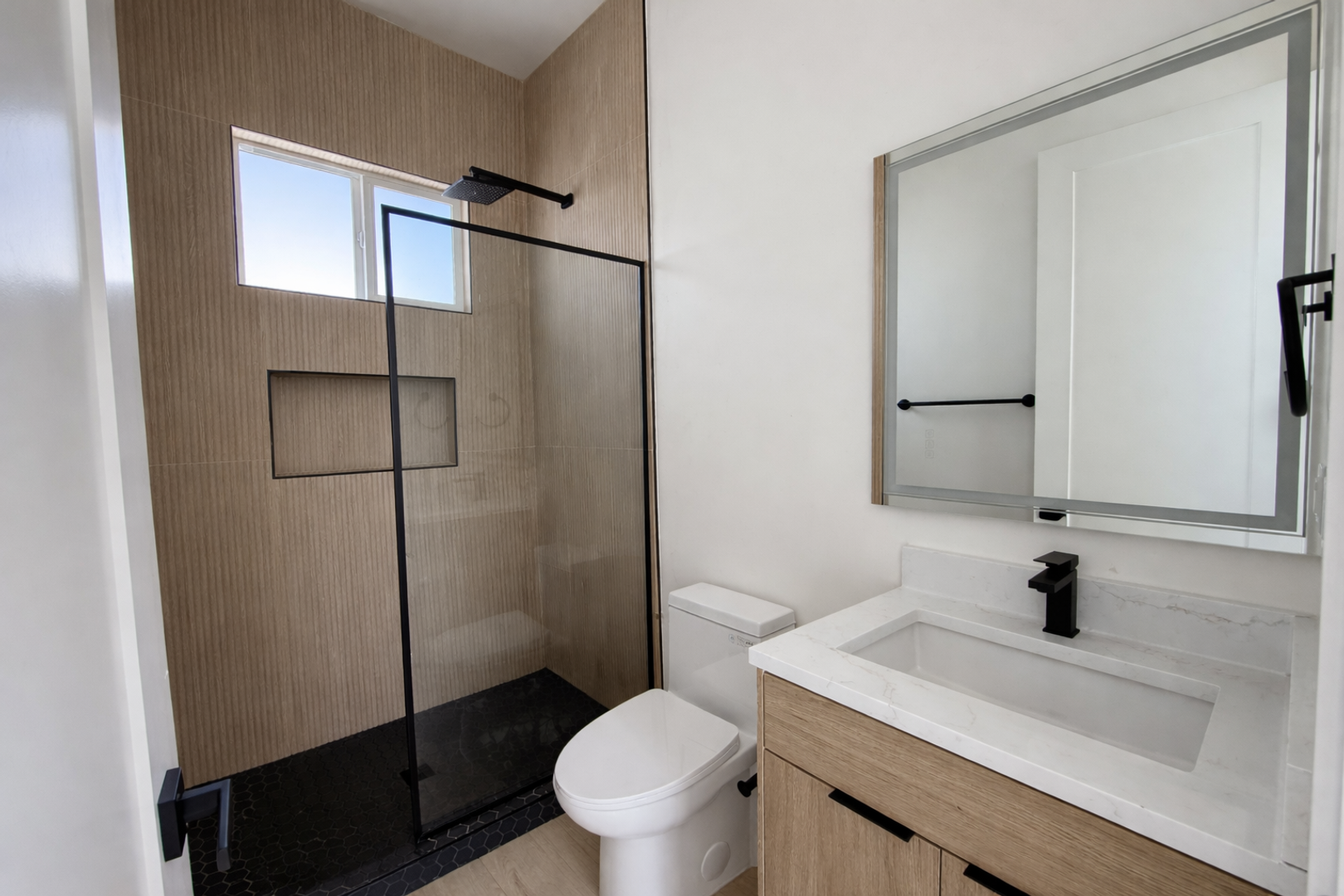 • Matte black fixtures